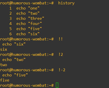 All three of the previous expansion commands are examples of designators. And there are several more powerful designators you can use to work with your bash history.