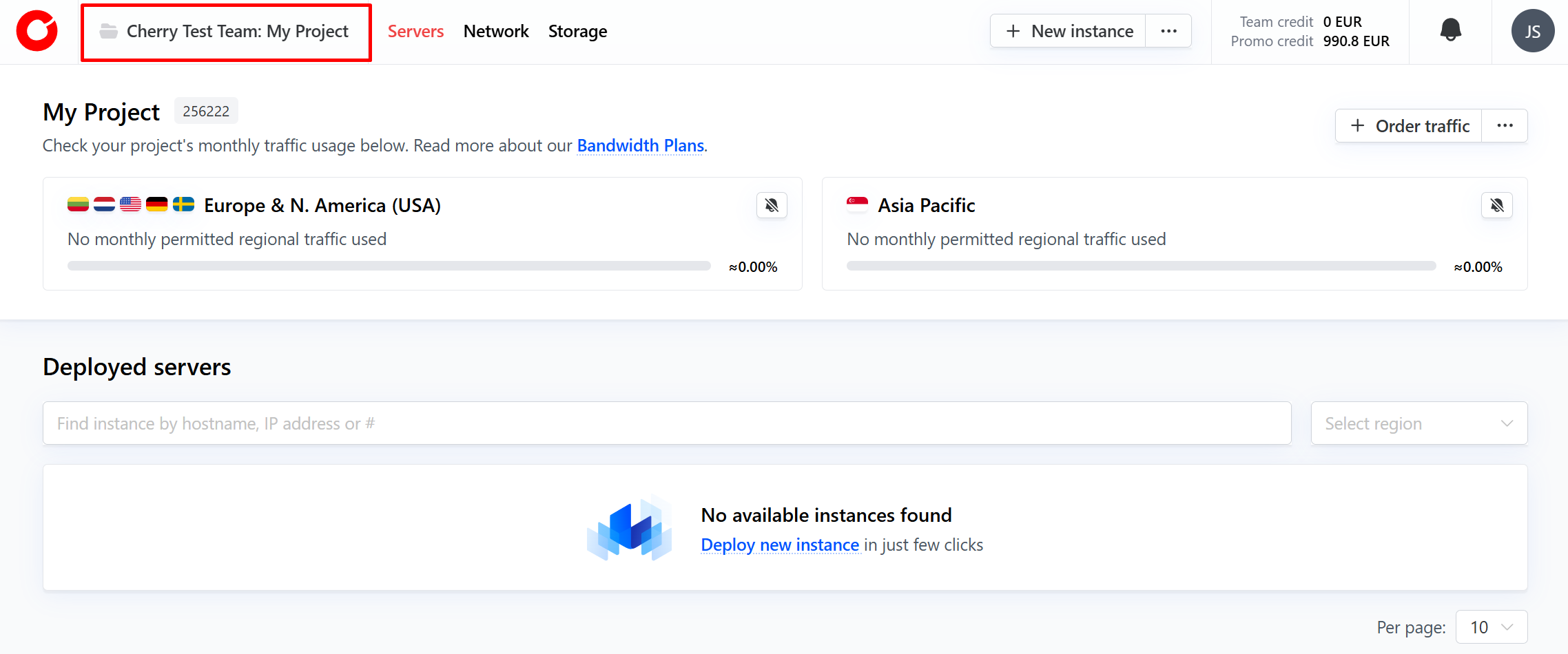 A project is a container that groups your computing, network, and storage services. On a Project level you can deploy new servers, manage your IP addresses, add storage volumes, and configure networking features. Compute resources are isolated to the project they are activated within, and are not connected to any networking features of any other projects operated by the same team or account. This ensures high security and predictable performance.