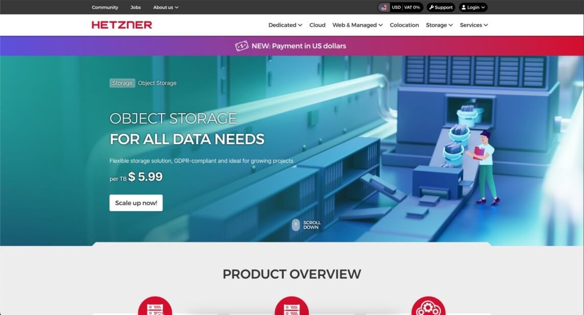 Hetzner gives you more storage and backup solutions at a low cost, ensuring data security and easy scalability as requirements grow.
