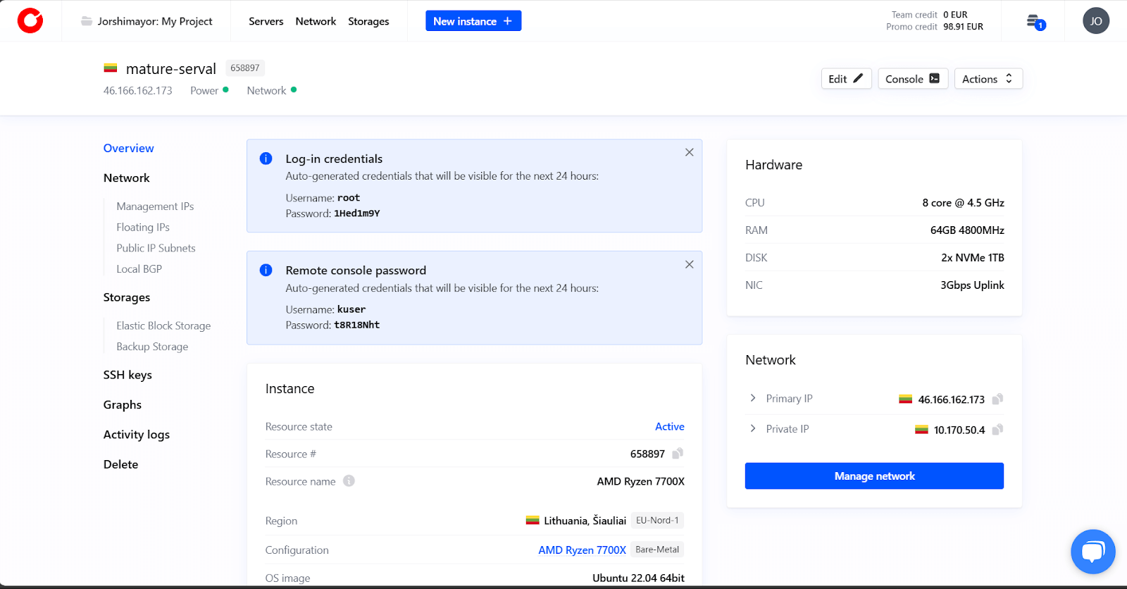 Obtain SSH Credentials: From your dashboard, get the username and password to log in.