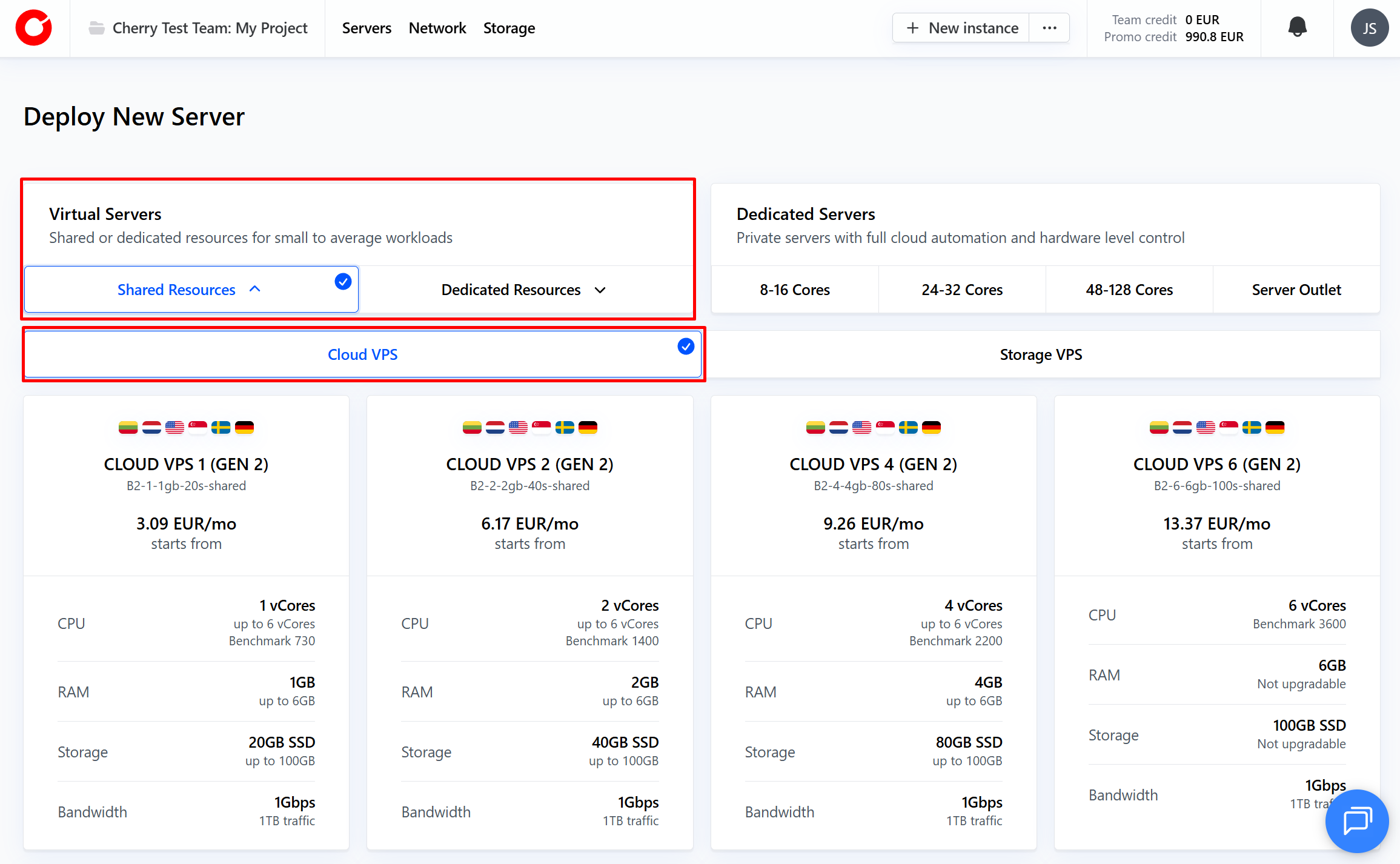 Cherry Servers Cloud Virtual Private Servers (VPS are ideal for clients looking for flexible lightweight infrastructure solutions with low performance and storage requirements. We offer two models of Cloud VPS, our standard line, offering baseline compute, and our Gen 2 servers, which use more modern virtualized CPU hardware to provide a smoother experience.