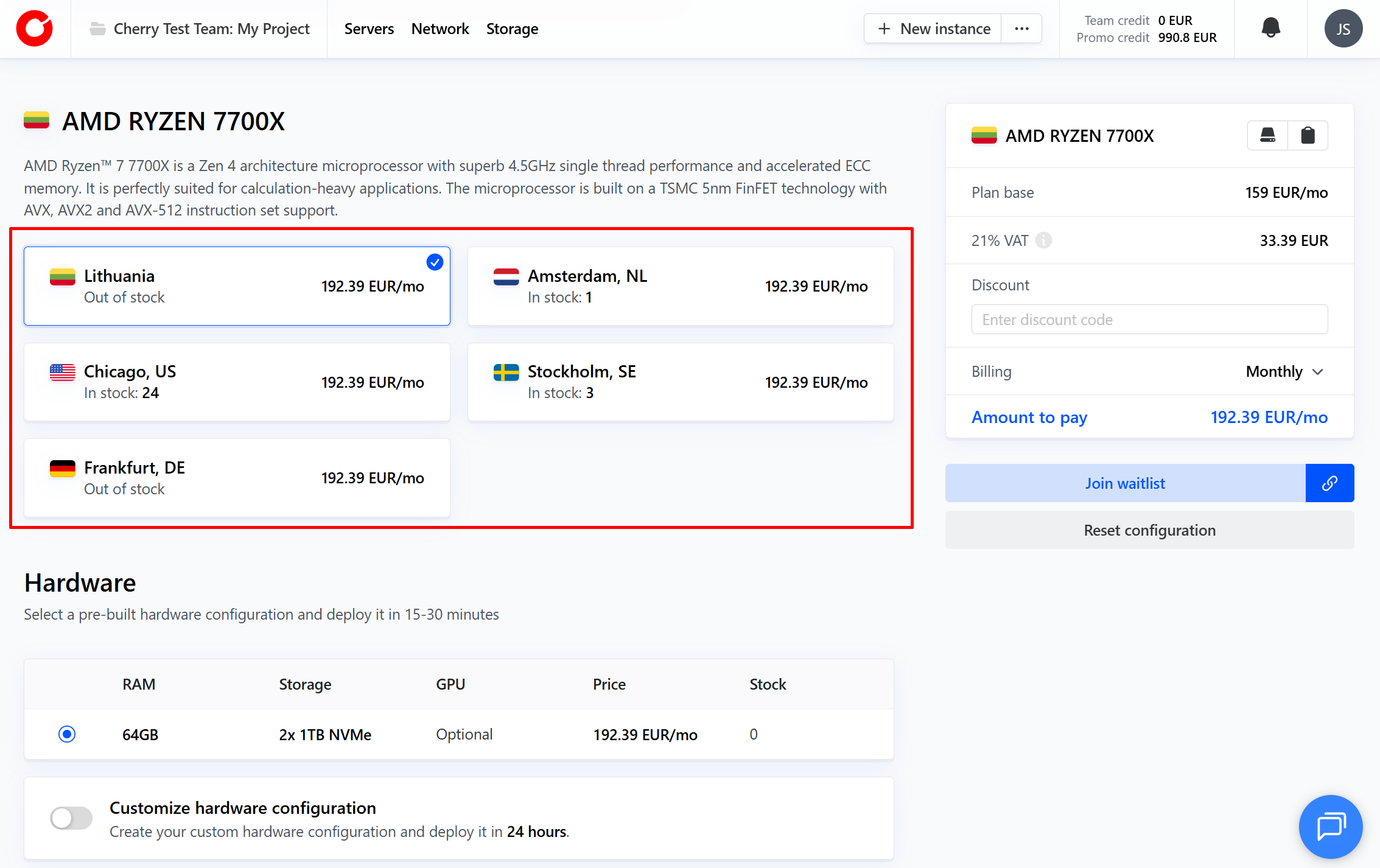 You can order any of our dedicated servers through the client portal, or via automation with Cherry Servers API.