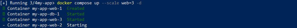 The output below shows that the web-3 service has been scaled by 3 replicas.