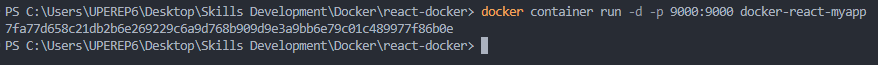 docker container run -d -p 9000:9000 docker-react-application