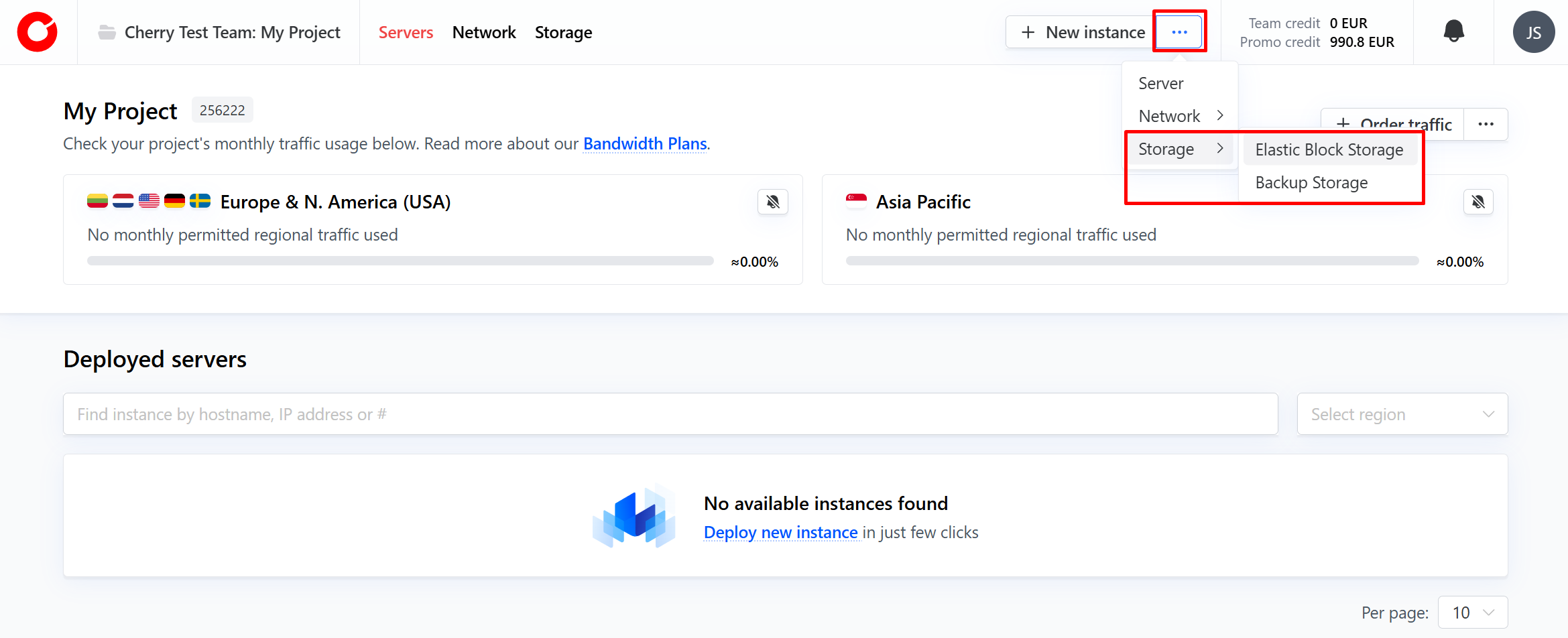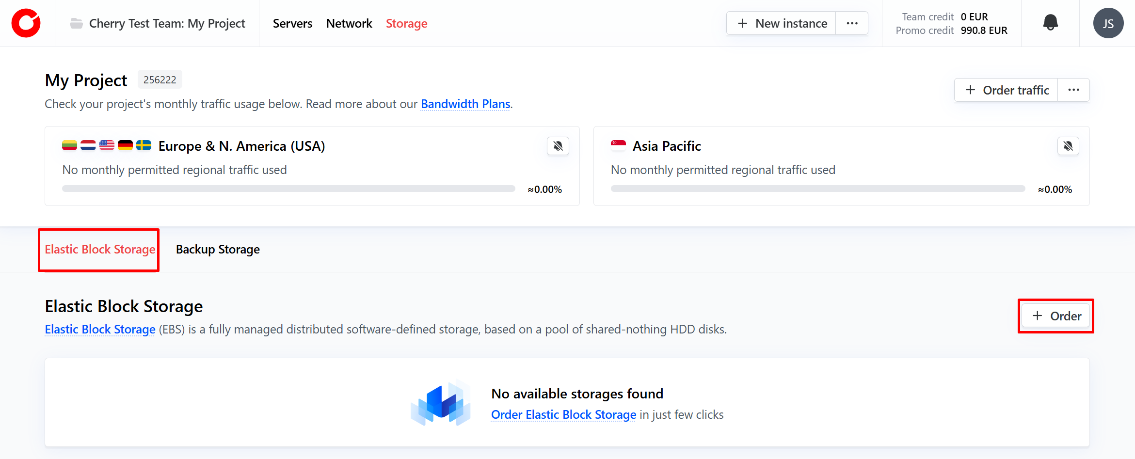 Elastic block storage is currently available only for bare-metal dedicated servers located in the Lithuania - Siauliai data center region. EBS can be deployed independently and attached to a server of your choice at a later time.