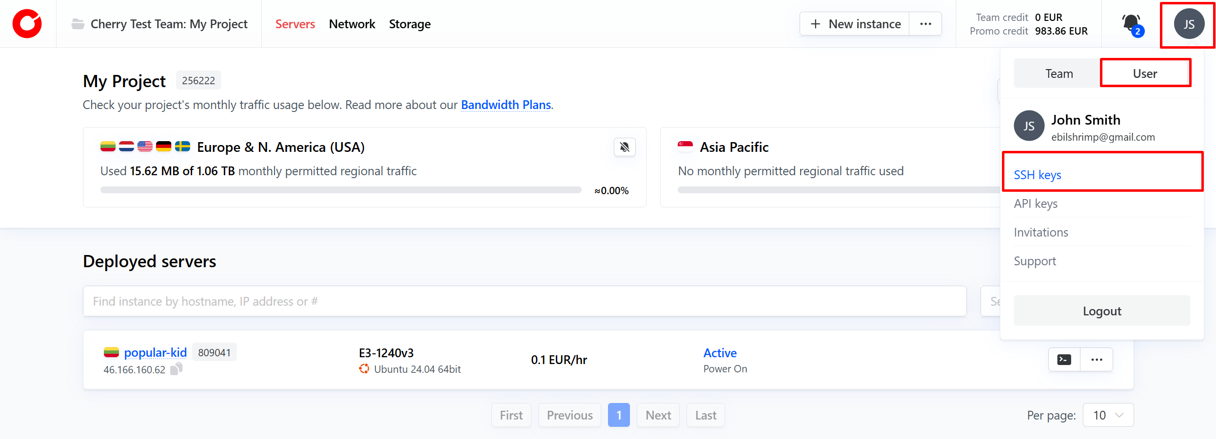 #Step 2 Add Your SSH Key to the Cherry Servers Client Portal