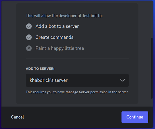 Under "Bot Permissions," choose the permissions your bot needs. As we are just sending messages, select “Send Messages”.