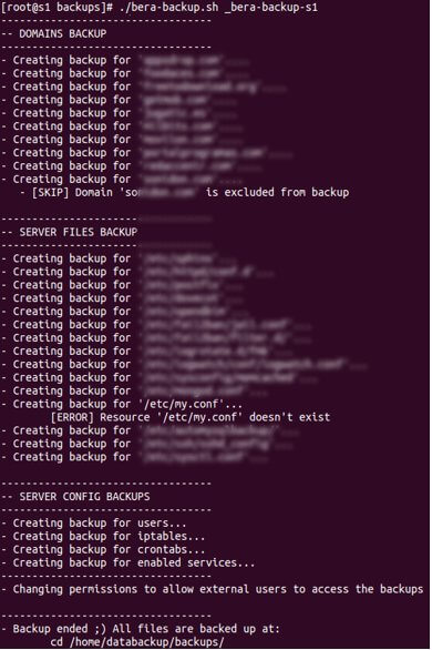 Hit Enter and Bera will start with the backup process. You’ll see the program execute the following: