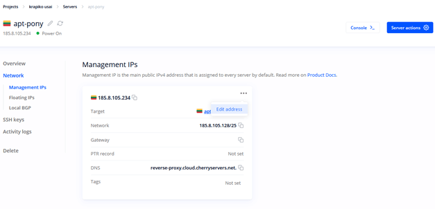 To do so go to your Client Portal, access your server's Network options, and press “Edit address” button on the Management IP:
