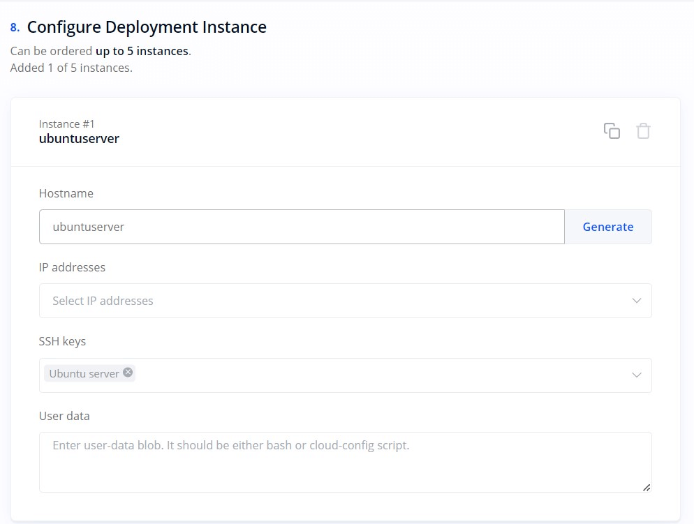 3: Instance name and SSH key