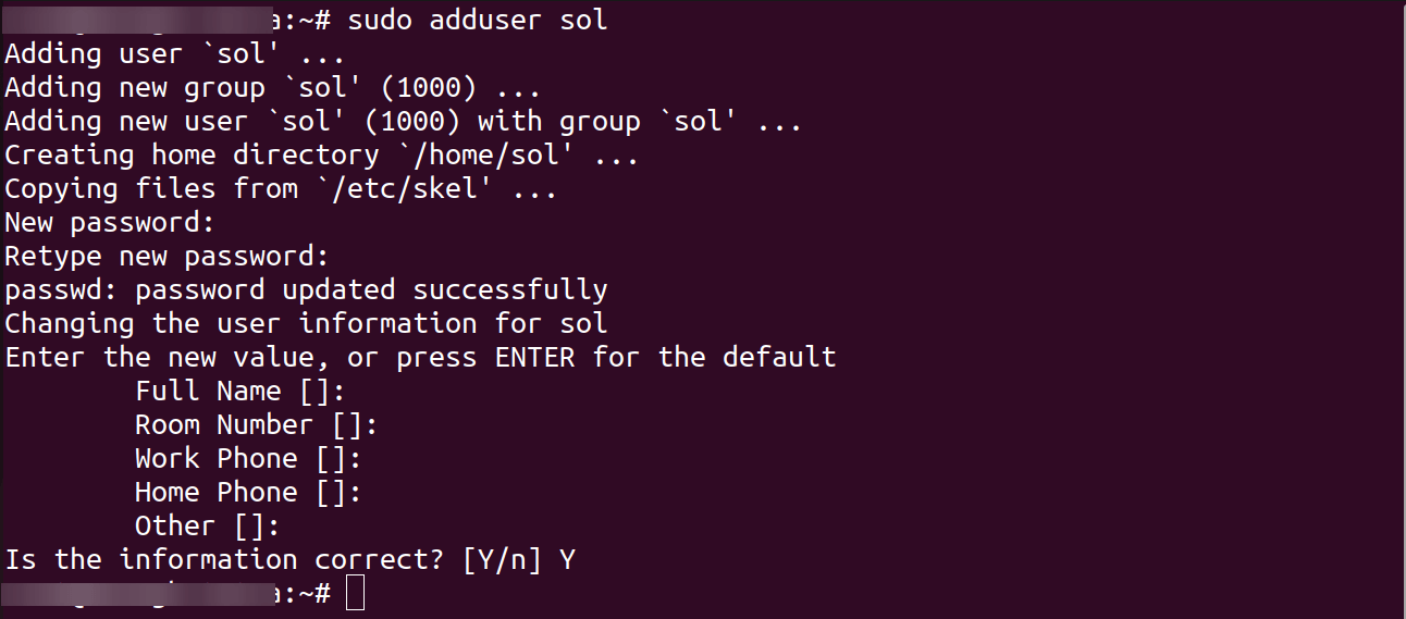 Now create a new user on your server which will be running the validator service using the adduser command.