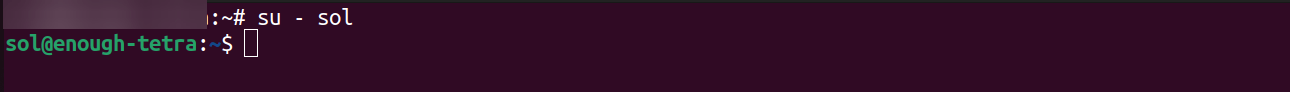 Switch back to terminal where you’ve SSHed into the remote server and switch to the sol user using: