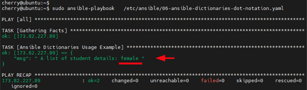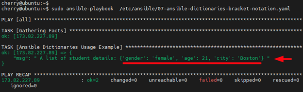 For example, to print out the student details for Alice edit the playbook as follows.