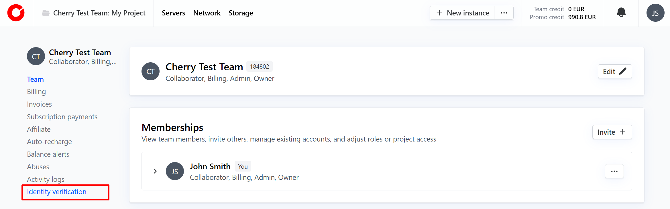 Identity verification is mandatory for clients that wish to set up automatic payments and top-ups for Cherry Servers fixed-term billing and auto-recharge services.