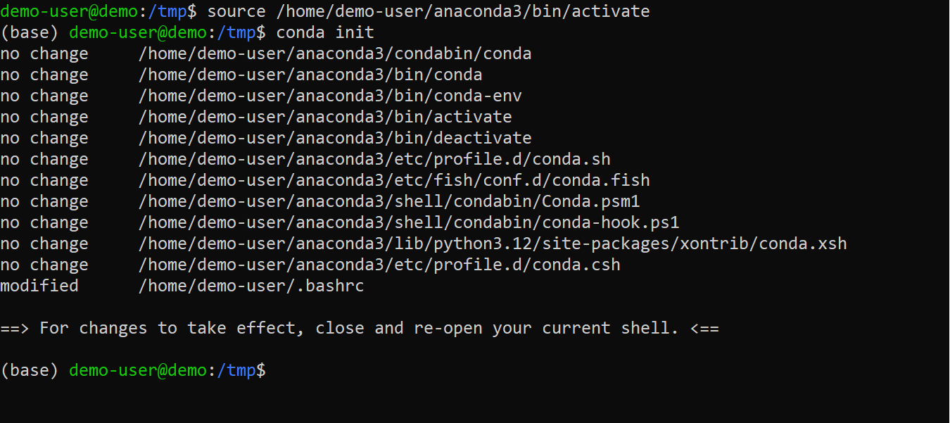 With the installation and activation complete, the base environment will automatically activate each time you open a new terminal. If you prefer not to have the base environment activated by default, you can disable this behavior by running:
