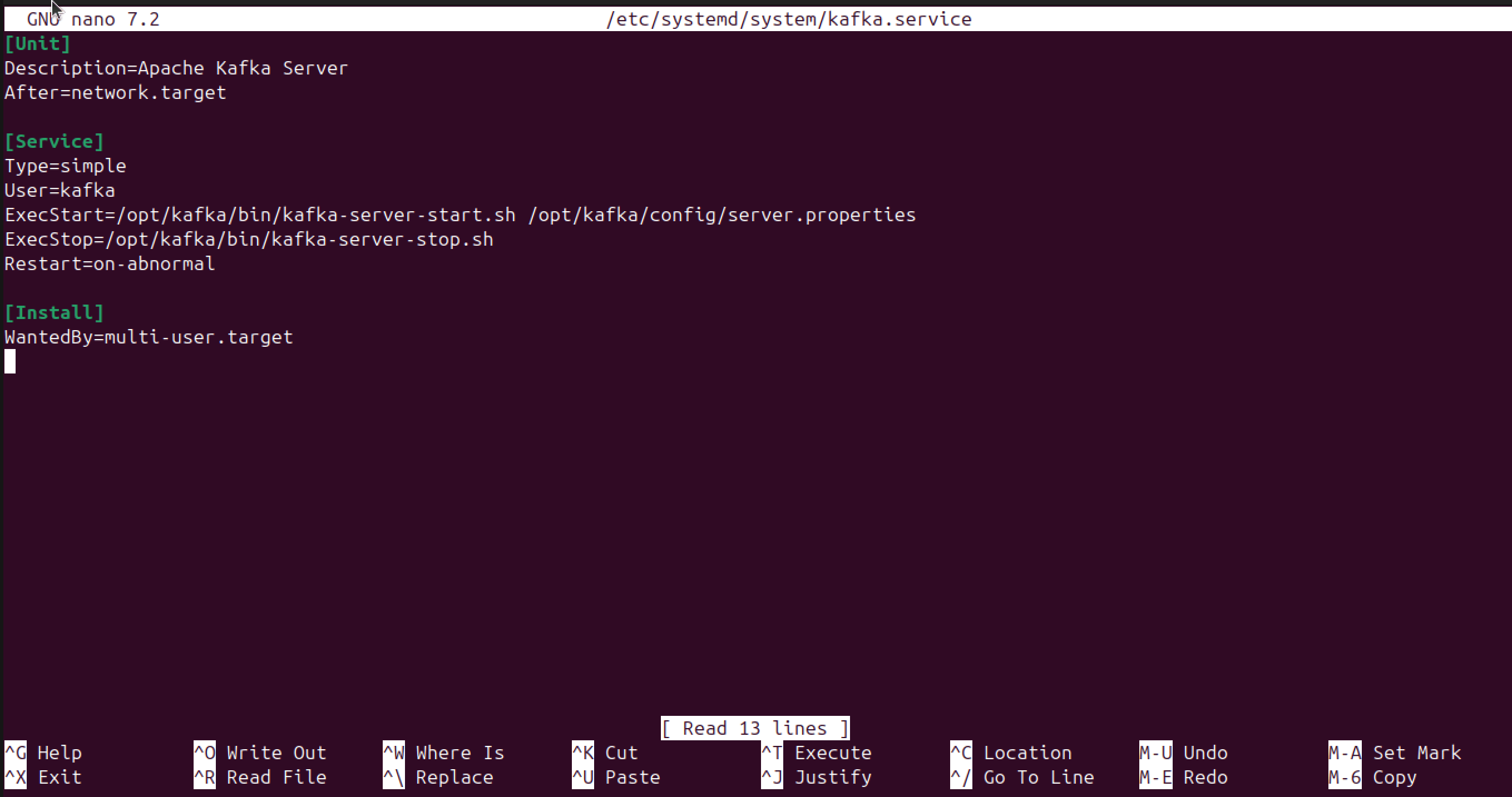 sudo nano /etc/systemd/system/kafka.service