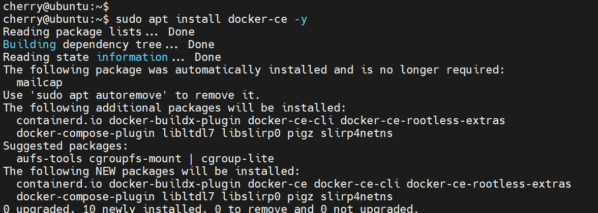 sudo apt install docker-ce -y