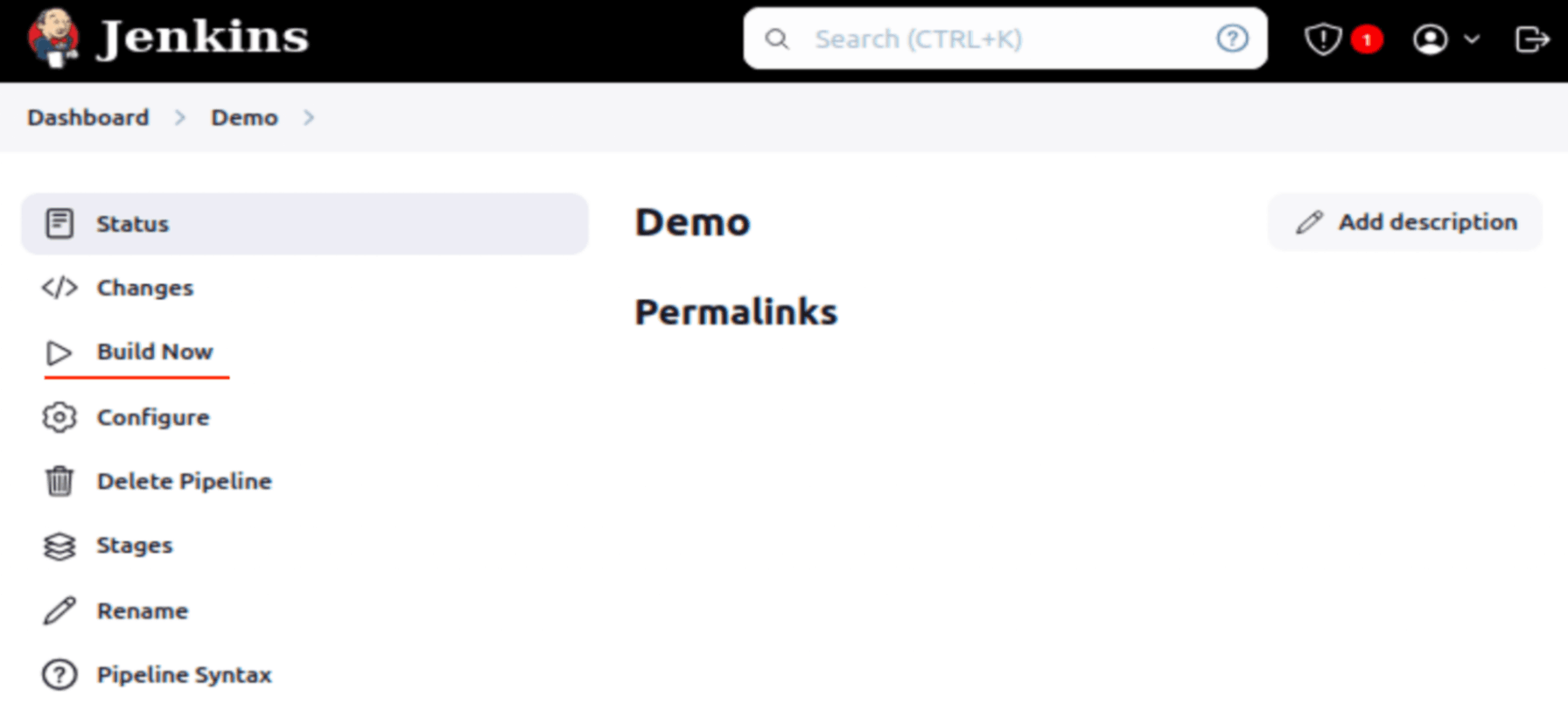 Once you’ve written the pipeline script, click Save. On the job’s dashboard, click Build Now to run the pipeline.
