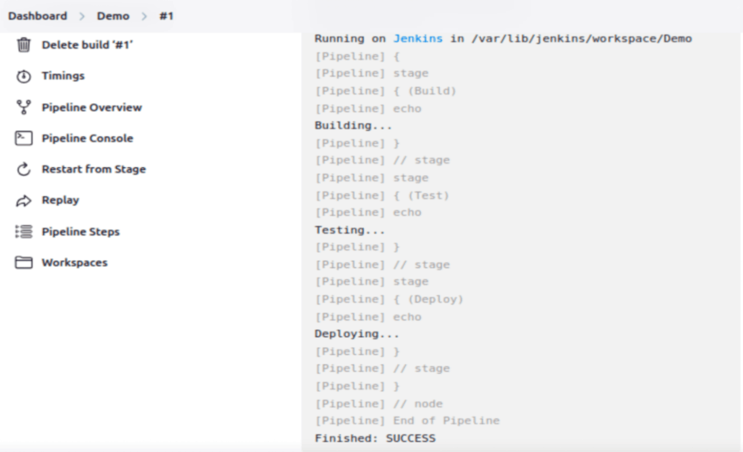 Jenkins will visually represent the pipeline, showing each stage and whether it passed or failed.