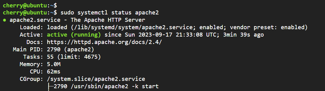 The command installs Apache alongside all the necessary libraries and dependencies. By default, Apache starts automatically upon installation. To confirm this, run the command:
