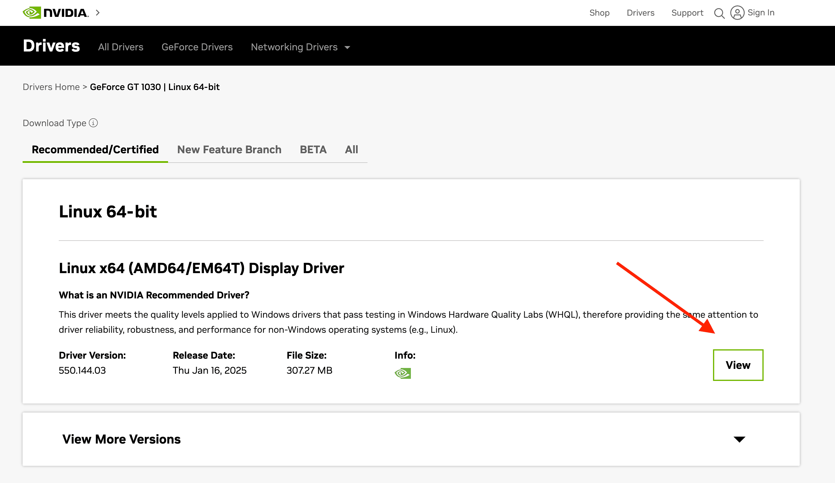 Then, install the specific version you want. However, we advise using the driver tagged recommended: