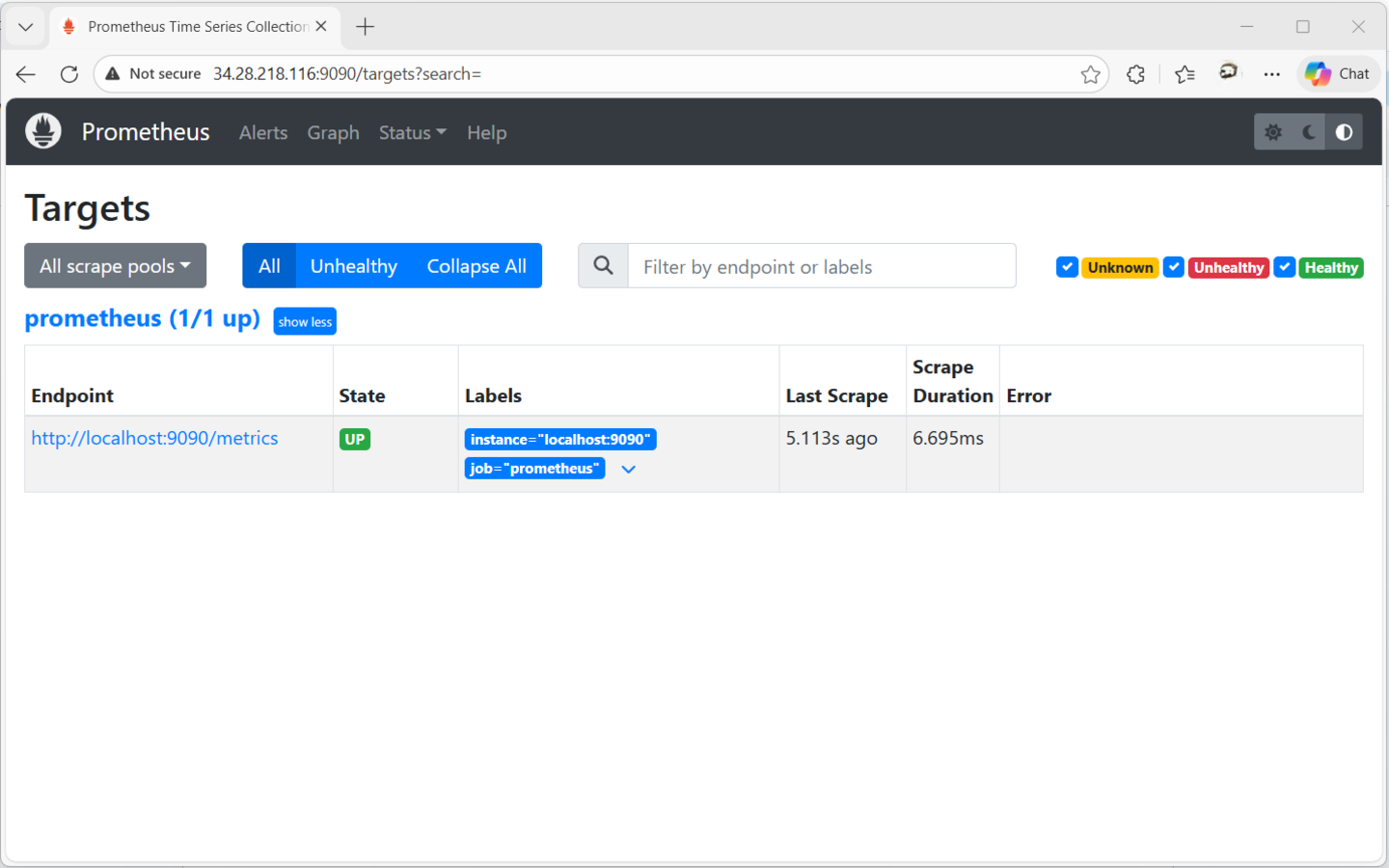 With all the configurations and settings in place, it’s now time to access Prometheus