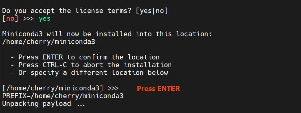 bash Miniconda3-latest-Linux-x86_64.sh