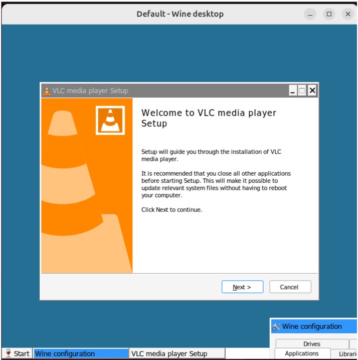 To demonstrate installing a Windows application with Wine, we will install the VLC media player, a free and open-source cross-platform media player.