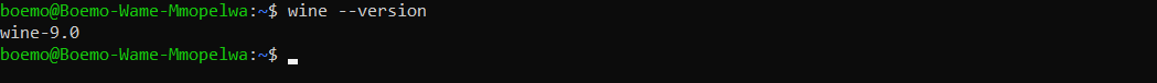 To confirm that Wine has been installed successfully, run the following command: