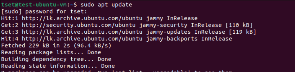 Open the Ubuntu terminal and run the following sudo apt update command: