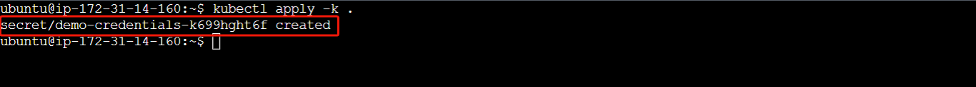 After running the command, you should see an output saying the secret has been created, like in the image below: