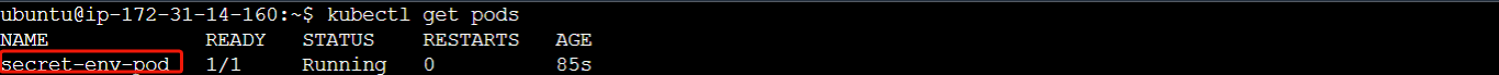 Where secret-env-pod.yaml is the configuration file. After running the command, you should get an output confirming the pod creation.