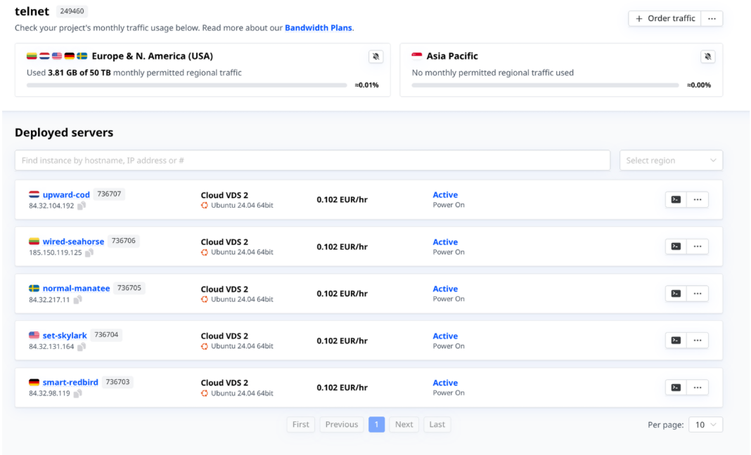 - Floating IP - A public IPv4 address that can be instantly moved from one server to another within the same region.