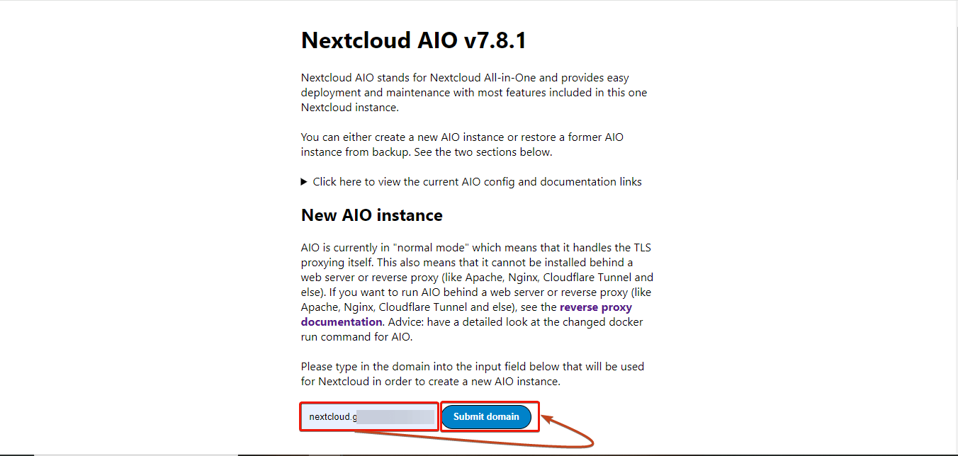 #Step 4 - Configure the domain for your Nextcloud AIO instance