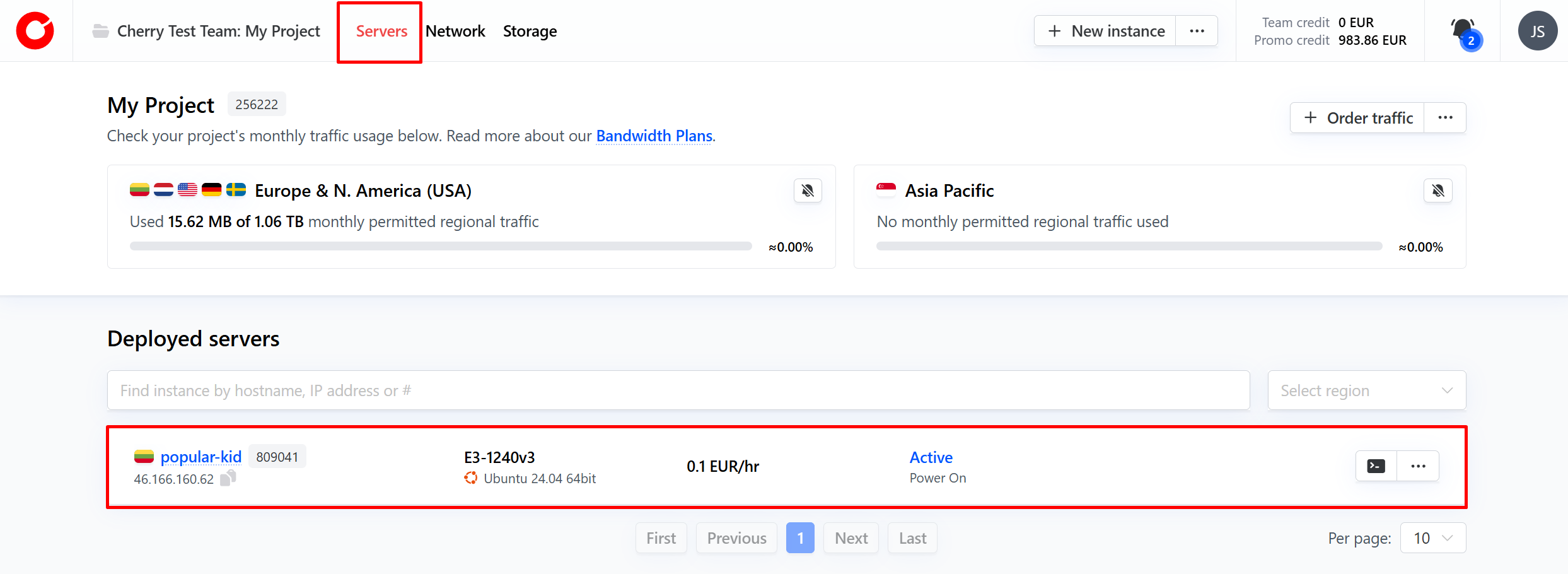 From the client portal home page, click the “Servers” button at the top of the page, and select which server you would like to access from the Deployed Servers.