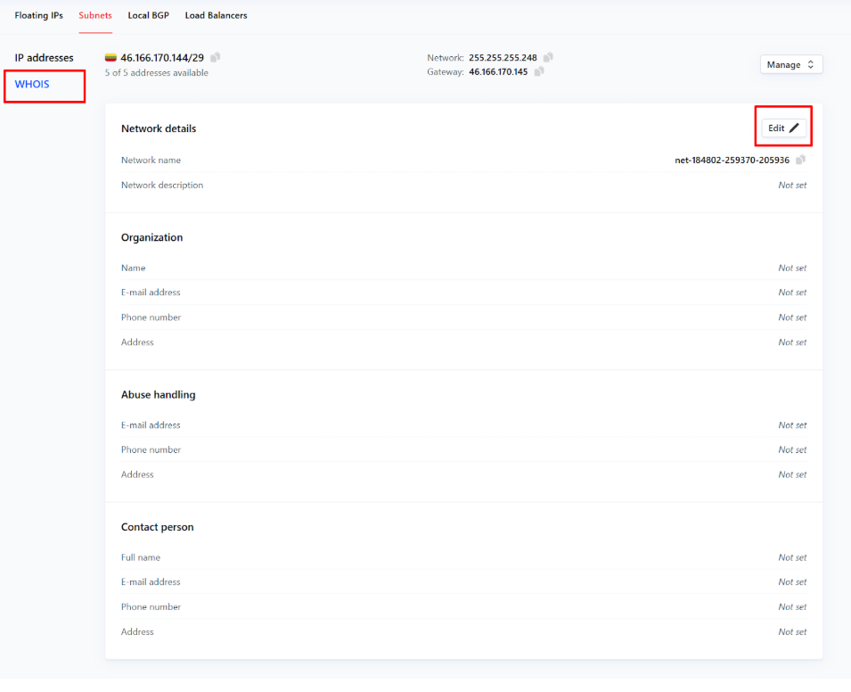 Here you can manage and configure your IP subnets (static route) to meet your needs. Simply click on the subnet you’d like to manage to get started.