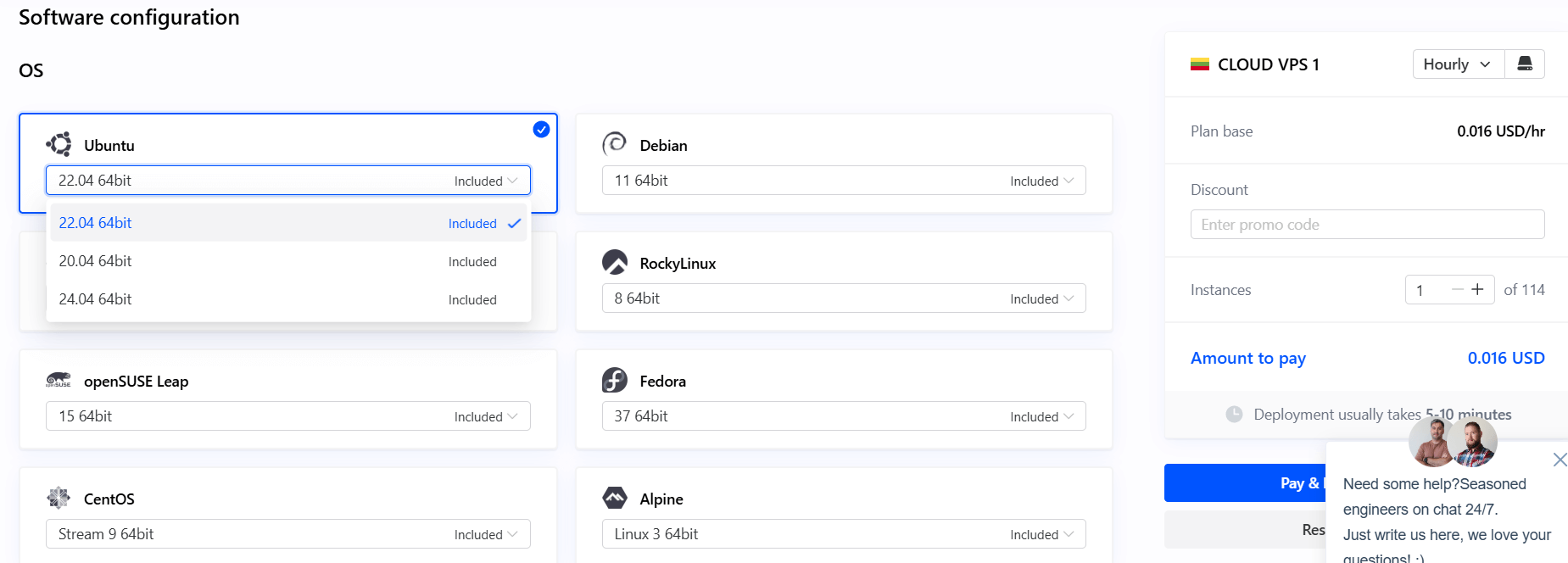 After choosing your plan, you can select your suitable operating system and its version. For this tutorial, we will select Ubuntu 24.04.