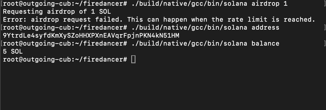 ./build/native/gcc/bin/solana config set --keypair /home/firedancer/validator-keypair.json