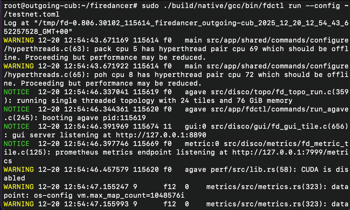 sudo ./build/native/gcc/bin/fdctl run --config ~/testnet.toml